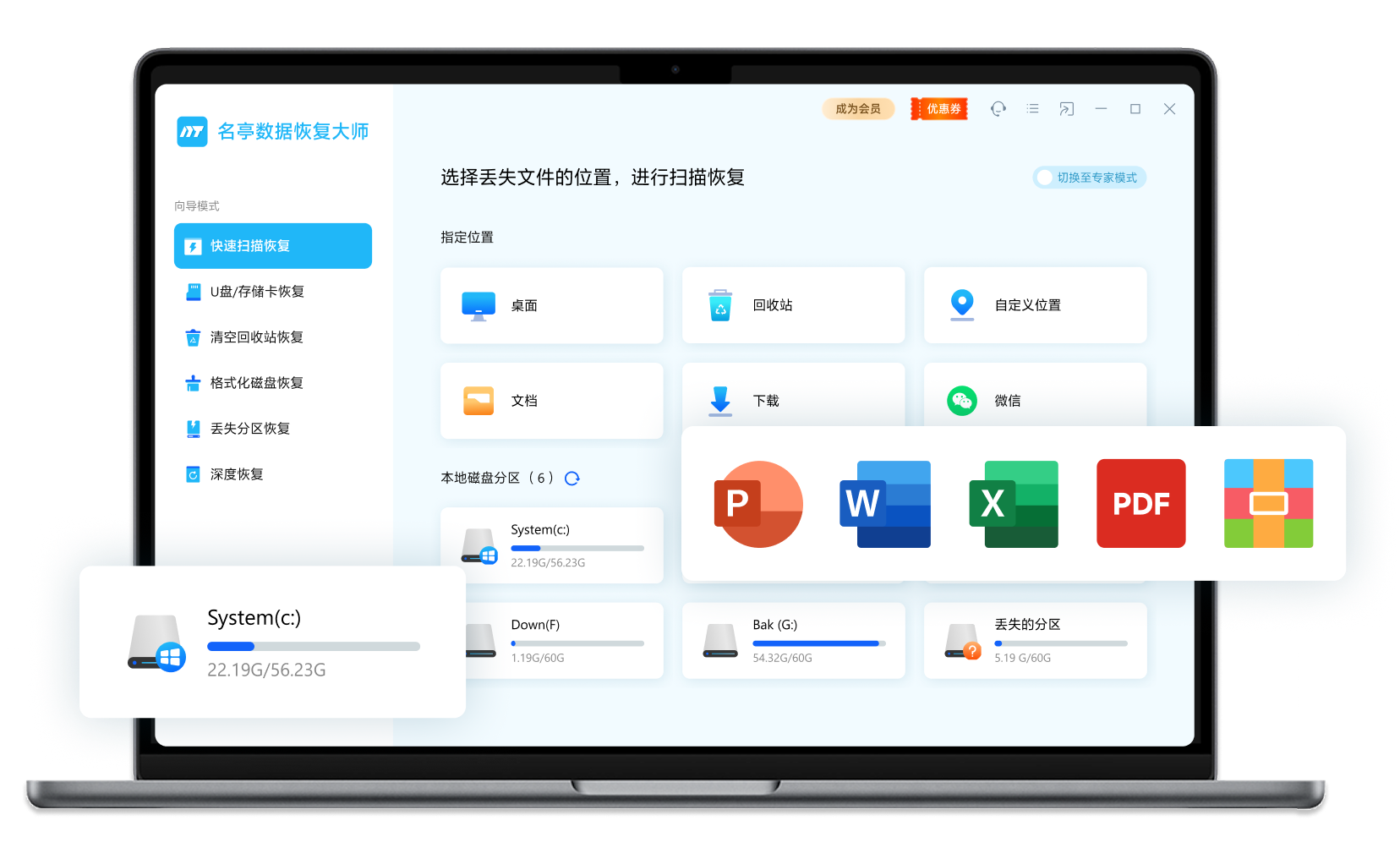 适配1000+文件格式,支持误删、格式化和系统重装等多应用场景。